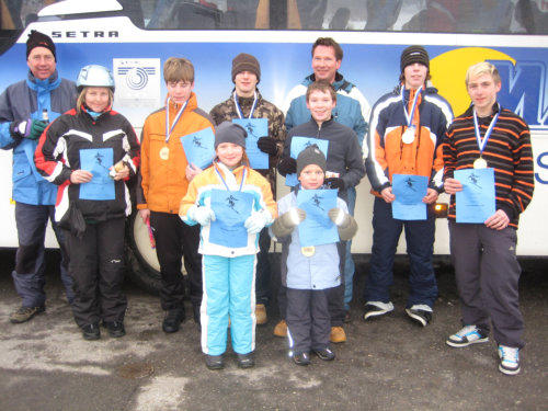 FlumserbergClubmeisterschaften 2009Die diesjähringen Clubmeisterschaften wurden in Flumserberg im Kanton St. Gallen CH durchgeführt. Bei leichtem Schneefall und gelegentlichem Nebel eine sportliche Herausforderung. Alle Teilnehmer waren - auch aufgrund der guten Organisation - bei bester Laune. Sabine Riethmüller konnte, in verschiedenen Alterklassen, die Erstplatzierten mit Medaille und Urkunden auszeichnen. Auch der jüngste Teilnehmer Paul war mit erst 5 Jahren voll Engagement bei der Sache. Die gute Stimmung zeigte sich auch auf der Heimfahrt als im Bus spontan ein Tänzchen gewagt wurde.