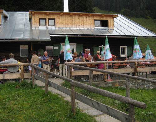 Wanderung im Kleinen Walsertalvom 06.- 07. September 2008Frühmorgens war Abfahrt ins Kleine Walsertal. Über Riezlern ging’s nach Mittelberg zur Talstadtion der Ifenbahn. Hier begann der Aufstieg durch das Schwarzwassertal, vorbei an der Melködhütte, hoch zur Schwarzwasser-hütte die auf 1651 ü.N.N liegt. Da wir auf der Hütte übernachten wollten, hatte manch einer “reichlich” Gepäck dabei was sich allsbald schweißtreibend bemerkbar machte. Das gute Abendessen und ein gemütlicher Hütten-abend entschädigte für die Stunden zuvor. Am nächsten Morgen regnete es und so fiel die geplante Gipfeltour zum Didamskopf buchstäblich ins Wasser. Glücklicherweise lies der Regen rasch nach und wir erreichten trocken unsere Autos.